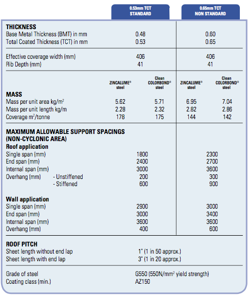 the profile has an effective cover width of 406mm and a rib height of 41mm.